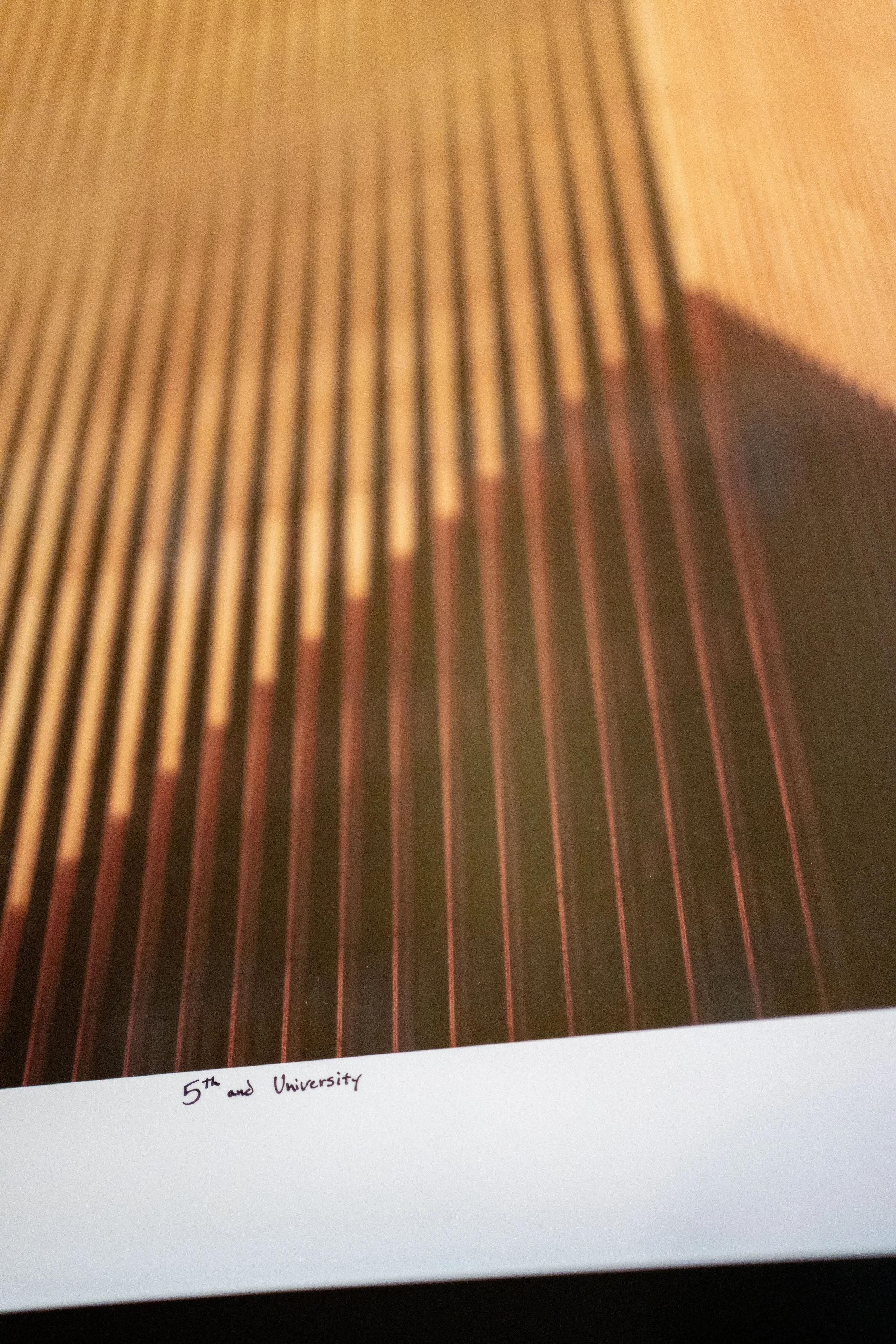 5th and University (2023) is an early exploration into urban landscapes, architecture, and abstract form. Created during a stint working in downtown Seattle from 2021-2024, I would leave my corporate office and search for light through the highrises of the city. This particular piece highlights the form of 1200 5th Ave and its interaction with the ambient light of the late afternoon.